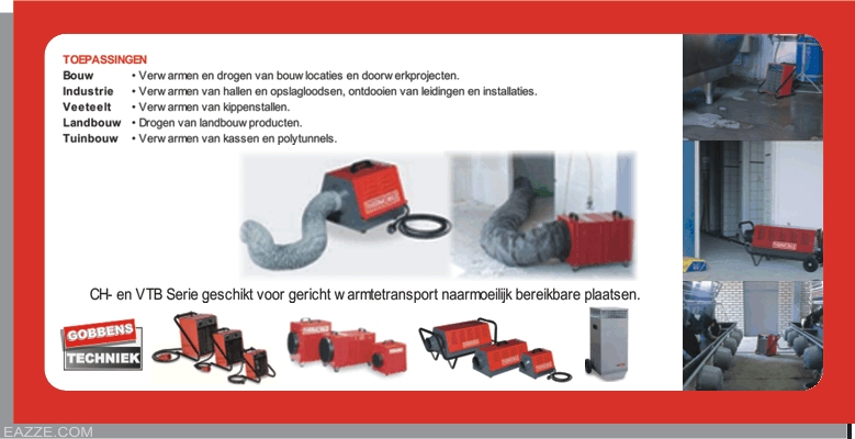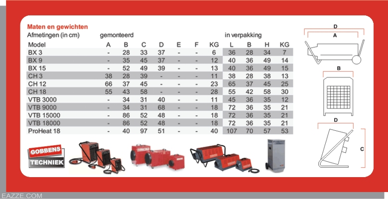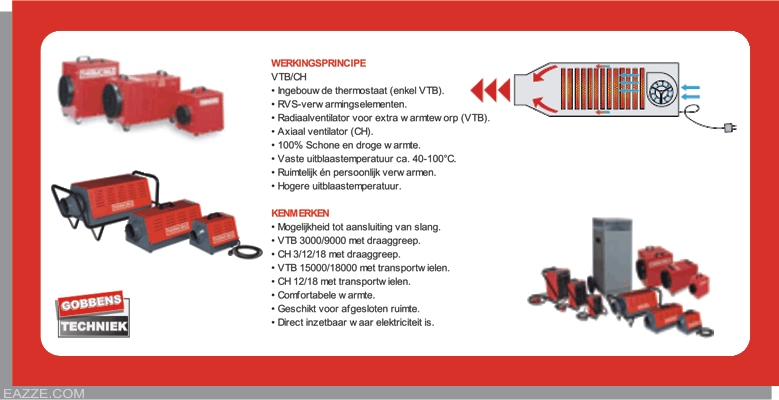 VTB 15000 Electrokanonmet gerichte luchtworp, mogelijkheid voor warmtetransport en ingebouwde thermostaat. Artikelcode: 40105015